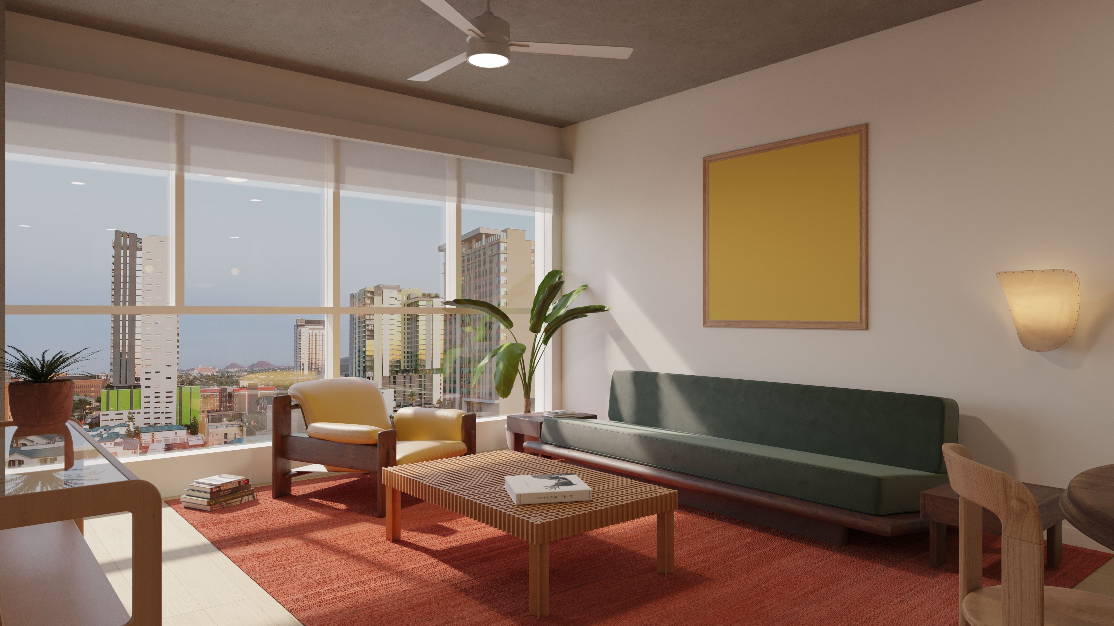 Ray Phoenix offers a collection of penthouse homes starting at a generous 1,600 square feet. This limited offering of residences includes upgraded features such as top of the line appliances, unique spacious layouts, elevated finishes, plus a retractable wall of windows, revealing panoramic views from the Camelback Mountains to the City skyline.