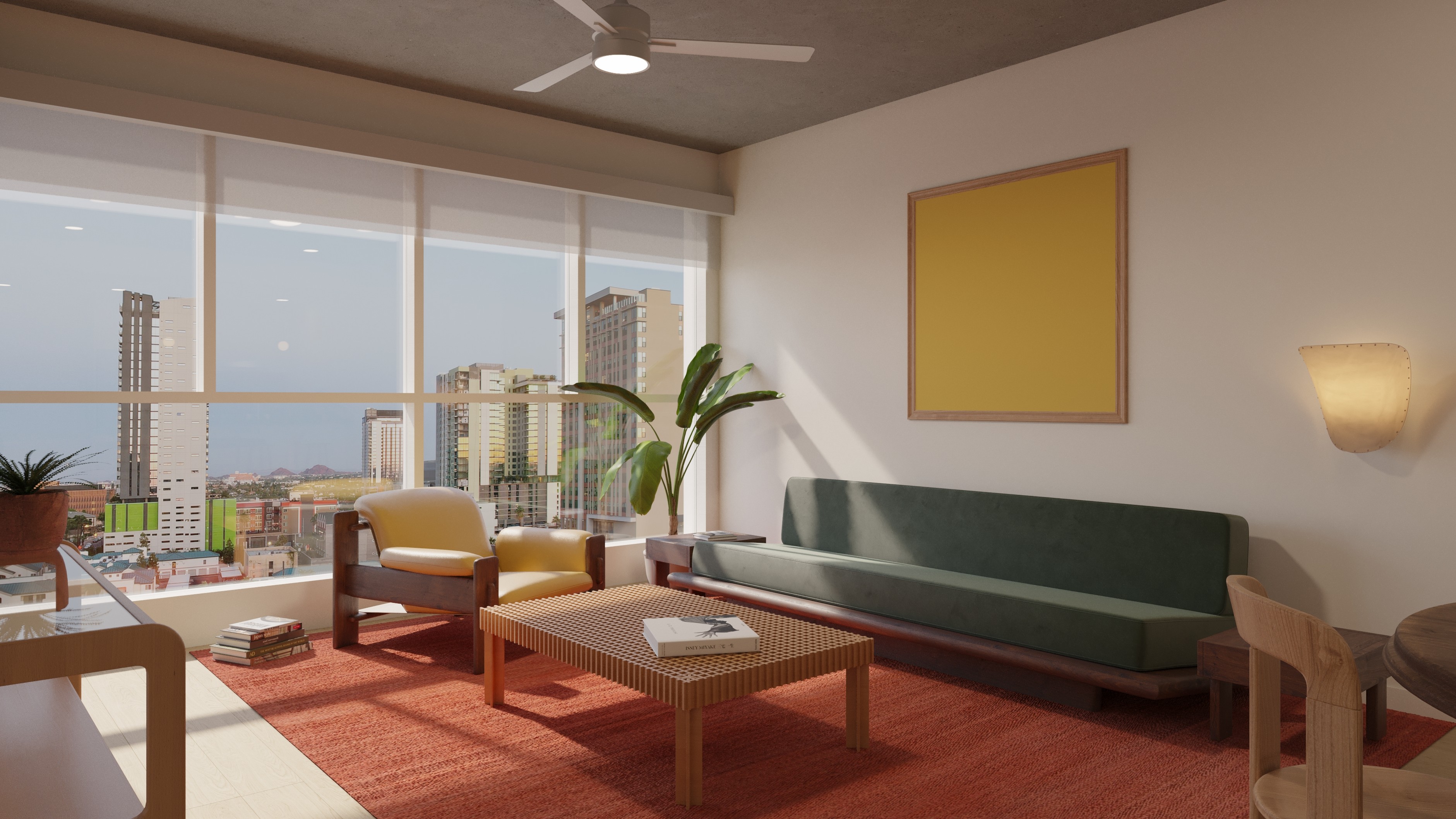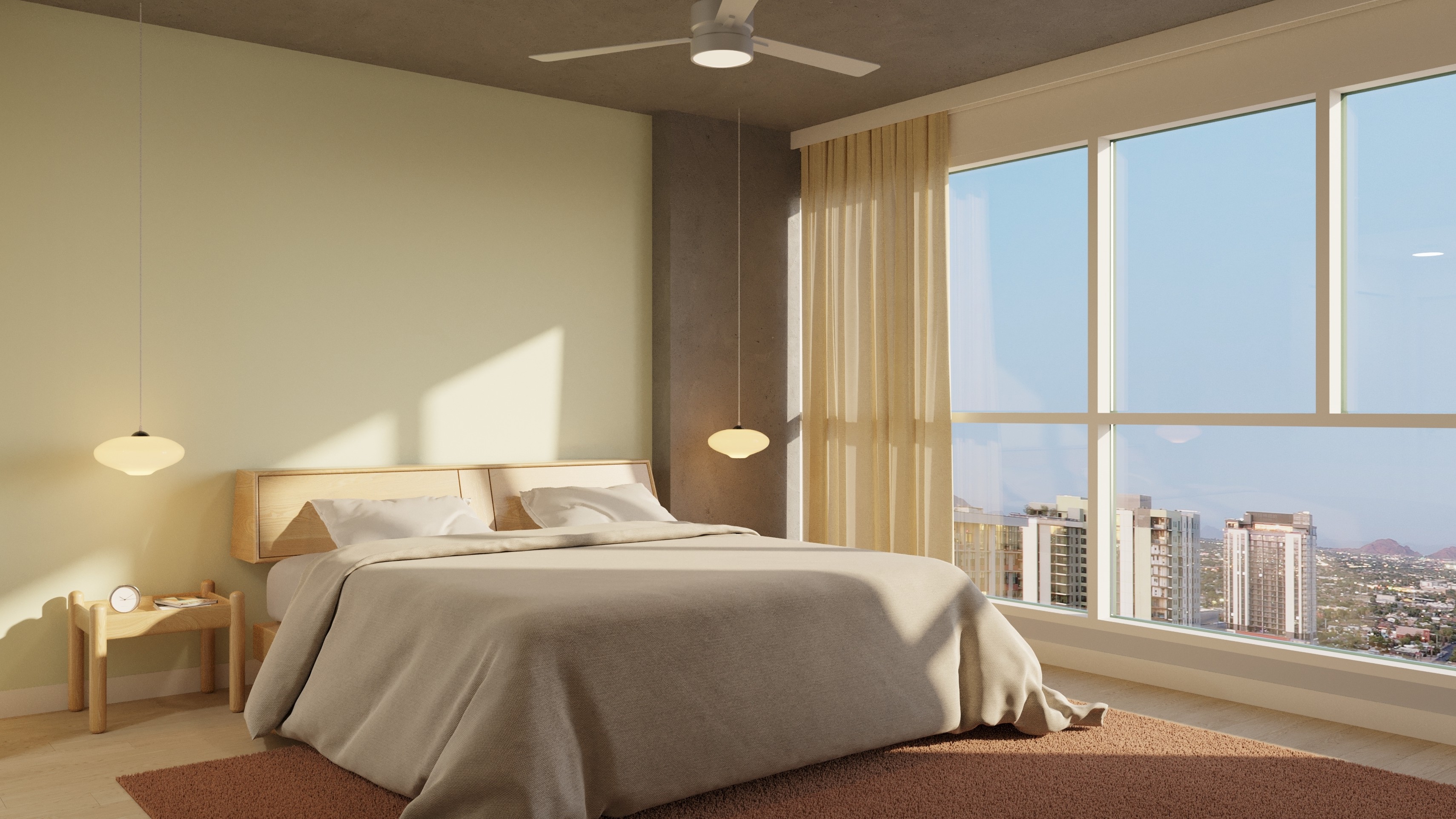 Ray Phoenix offers a collection of penthouse homes starting at a generous 1,600 square feet. This limited offering of residences includes upgraded features such as top of the line appliances, unique spacious layouts, elevated finishes, plus a retractable wall of windows, revealing panoramic views from the Camelback Mountains to the City skyline.
